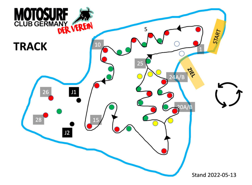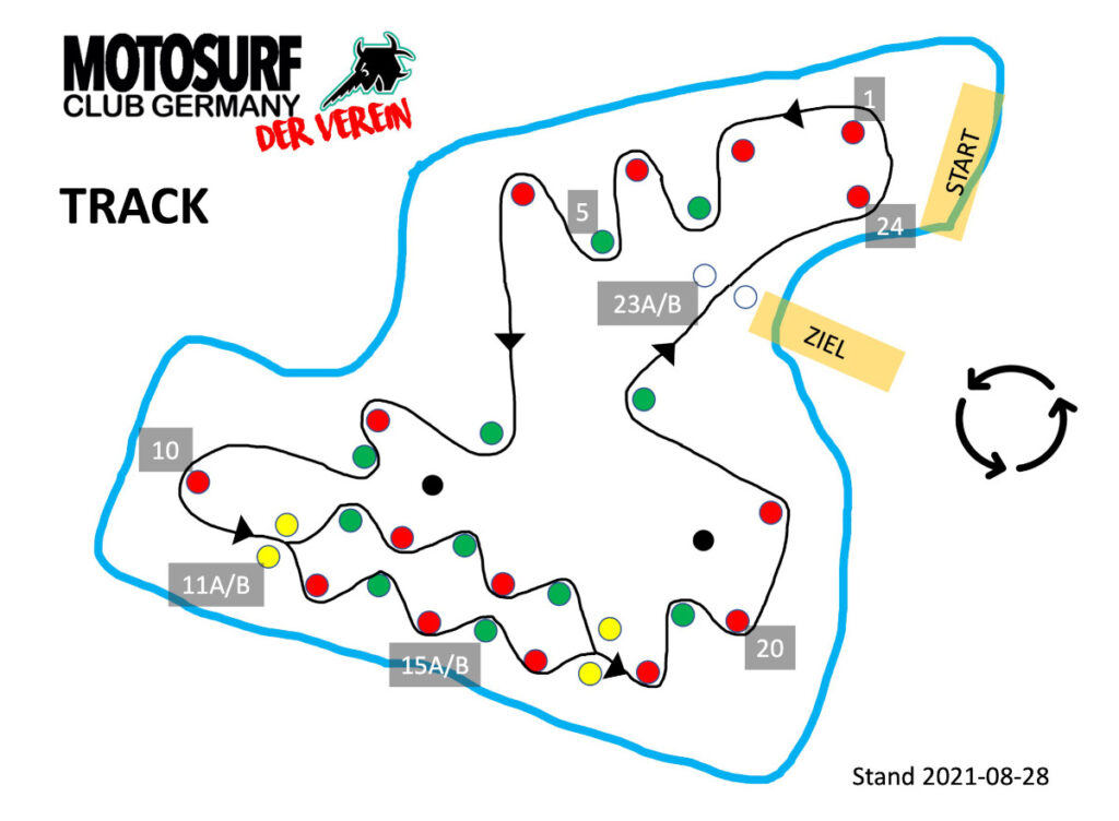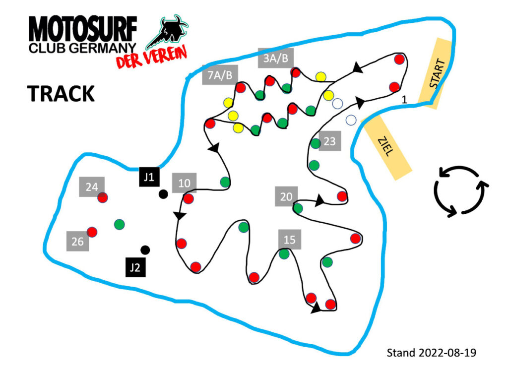 Das bedeutet, dass der Fahrer während des Rennens zu einem von ihm frei wählbaren Zeitpunkt in die Joker Lap abbiegen kann. Er MUSS einmal in der gesamten Renndistanz die Joker Lap durchfahren. Bei unserem Track bedeutet dies, dass nach Verlassen des Split und Durchfahren der Jokerbojen erneut der Split gefahren wird. Die Runde wird erst nach Durchfahrt zwischen den Zielbojen gezeitet.