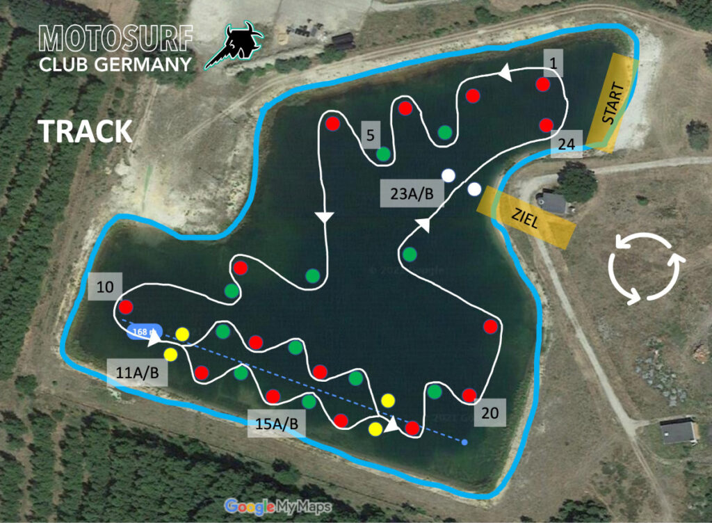 Auf unserem Trainingssee werden immer wieder neue Racetracks gesetzt. Damit ergeben sich stets neue Trainingsmöglichkeiten und Vorteile durch „In- und Auswendigkennen“ der Strecke werden eliminiert.
