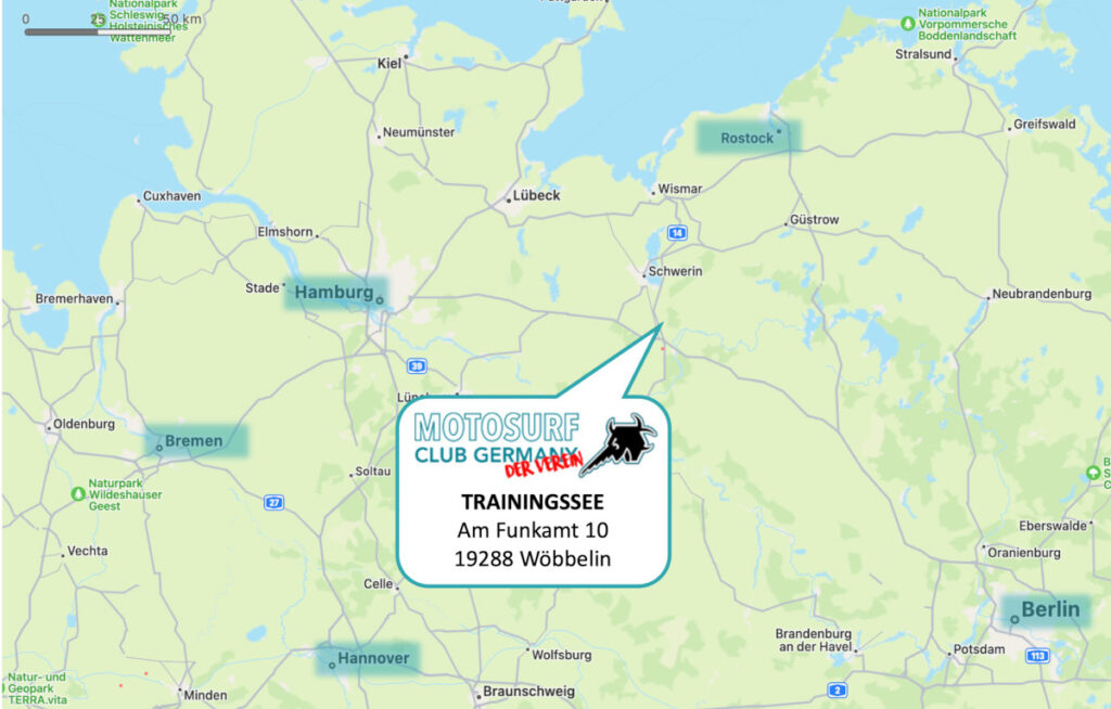 Unser Trainingssee liegt direkt an der Autobahn A24 zwischen Hamburg und Berlin. Von Hamburg ist man in ca. 1 Stunde vor Ort, aus Berlin braucht man ca. 1.5 Stunden.